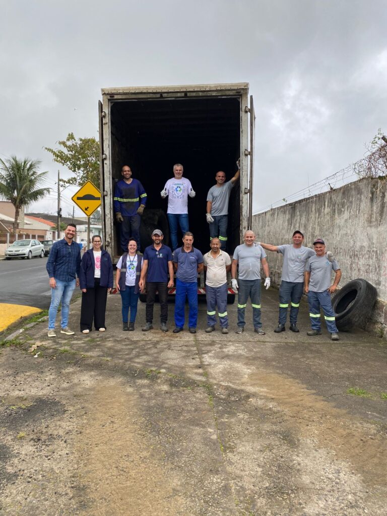Uma força-tarefa foi realizada por equipes da Prefeitura, que recolheu os pneus armazenados, entregando à empresa responsável.