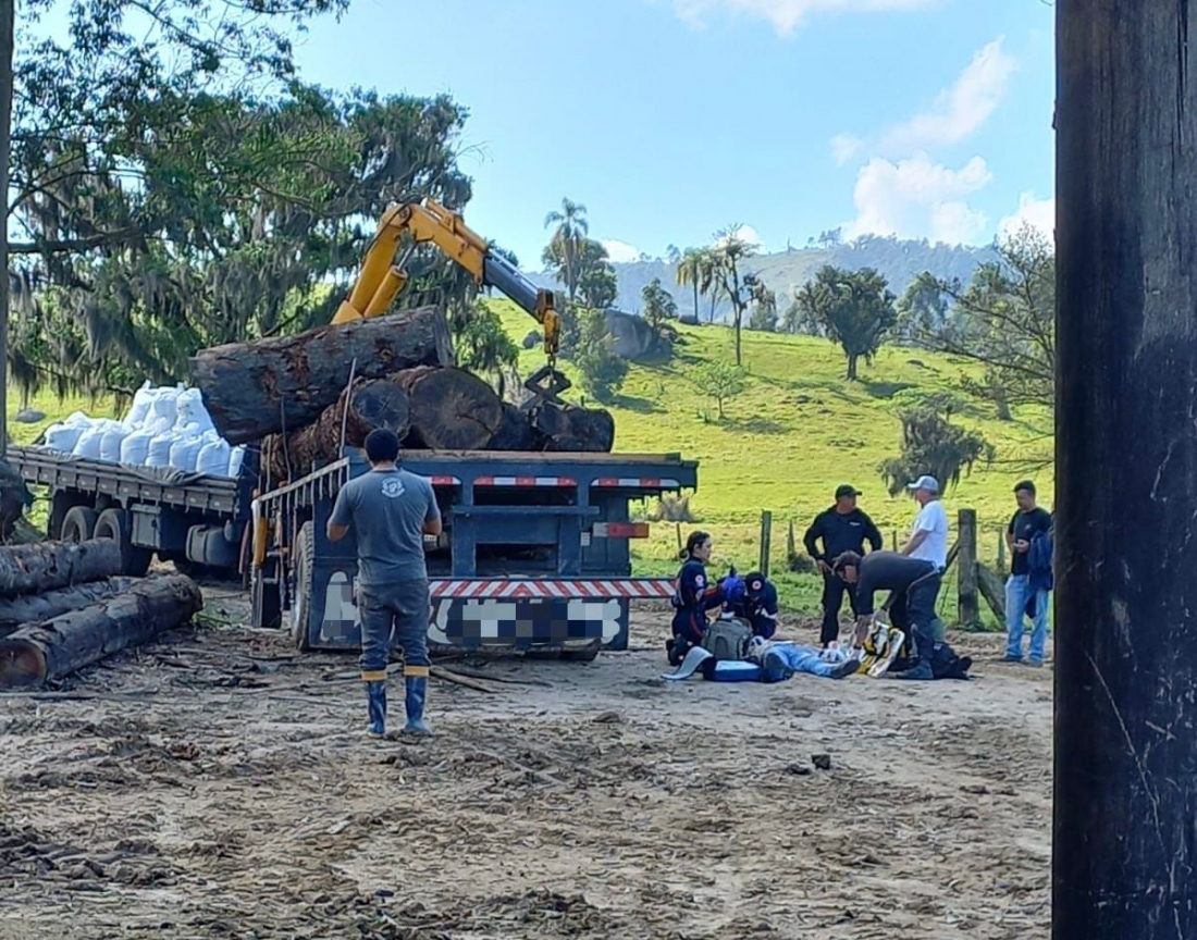 Um homem de 61 anos precisou ser levado de helicóptero até o hospital após cair de um caminhão, em Treze de Maio.