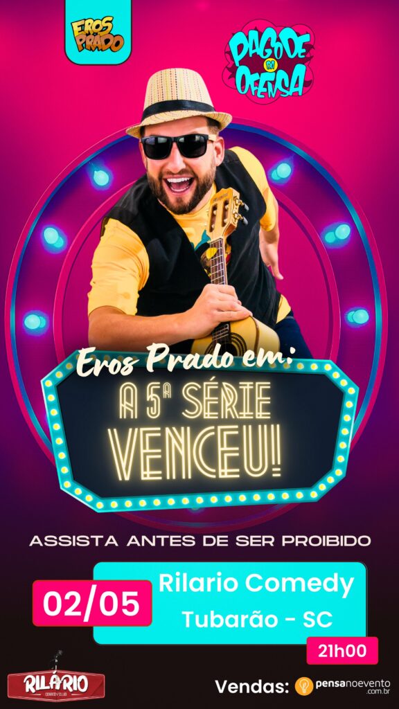 Já no início de maio, o humorista Eros Prado, conhecido pelo grupo “Pagode da Ofensa”, sobe ao palco no dia 2 de maio, também no Rilário Comedy Club, com o espetáculo “A 5ª Série Venceu”, prometendo um estilo mais irreverente e popular.