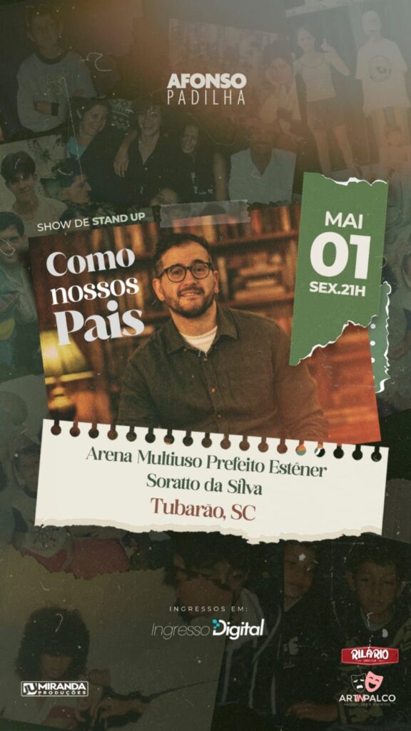 O principal destaque da programação é o comediante Afonso Padilha, um dos nomes mais consolidados do stand-up comedy brasileiro, que se apresenta na próxima sexta-feira, 1º de maio, em Tubarão.